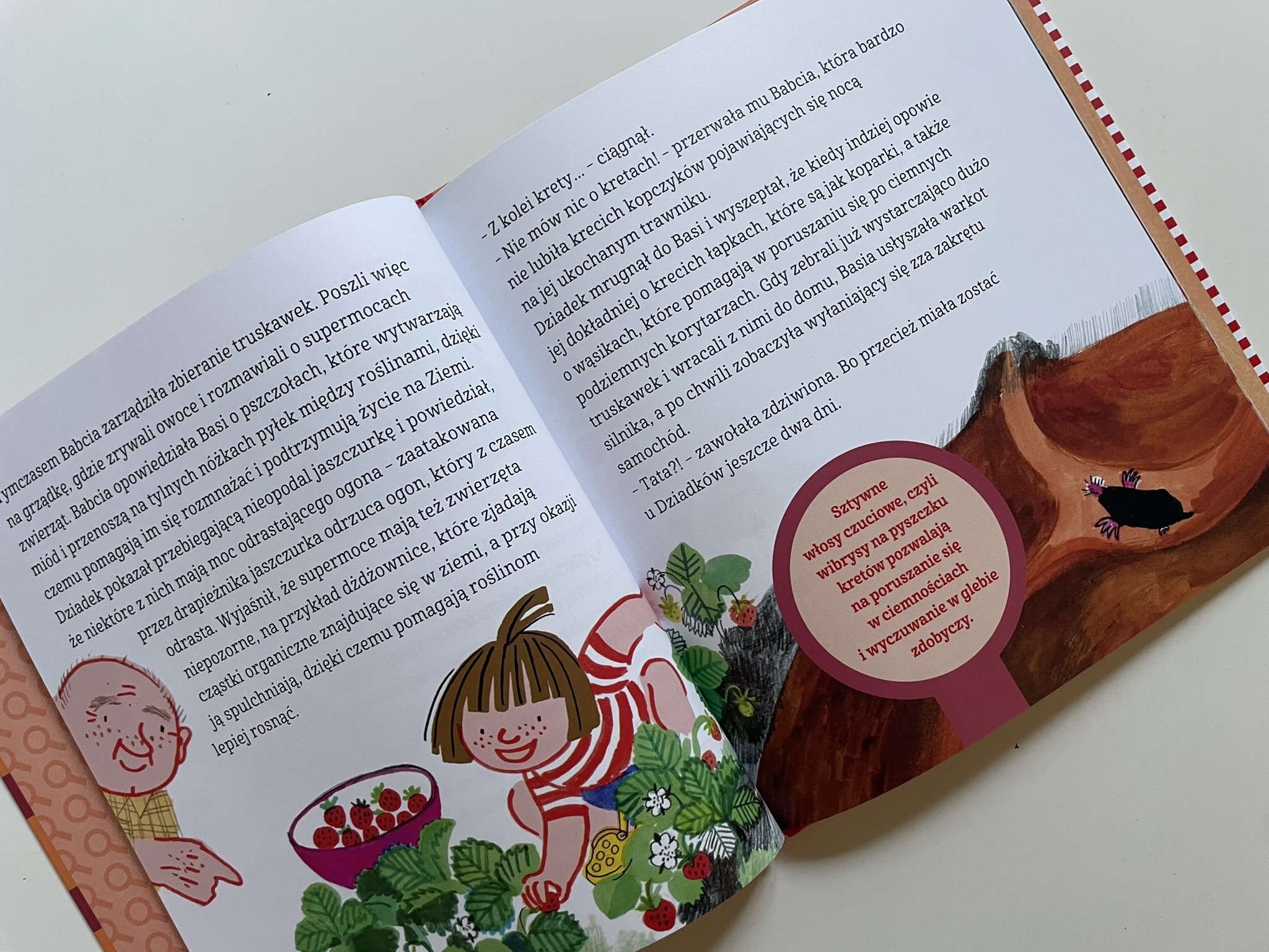 Książka w przystępny sposób łączy opowieść fabularną z elementami edukacyjnymi. Zabiera dzieci na wieś, gdzie razem z Basią odkrywają fascynujący świat przyrody.