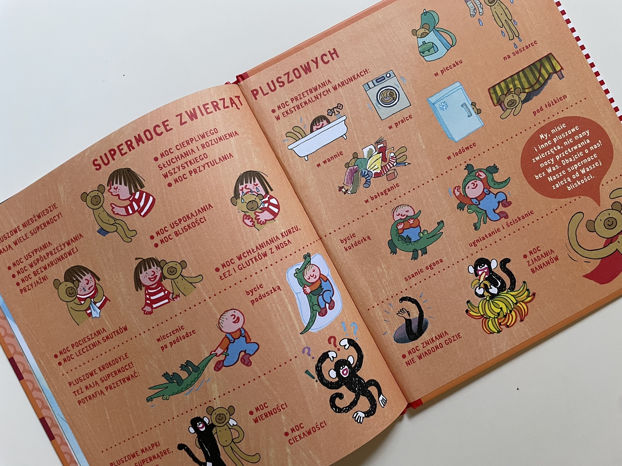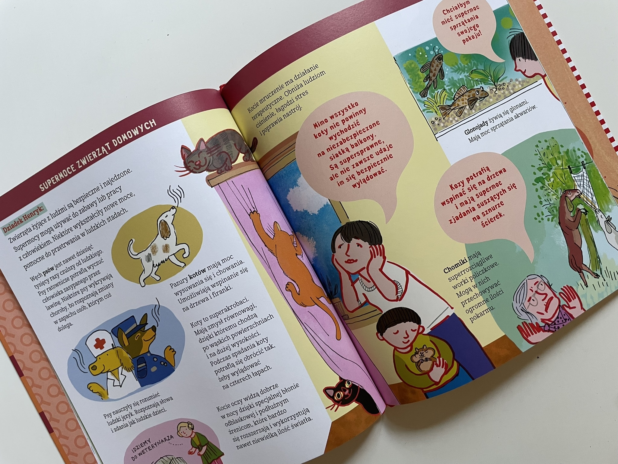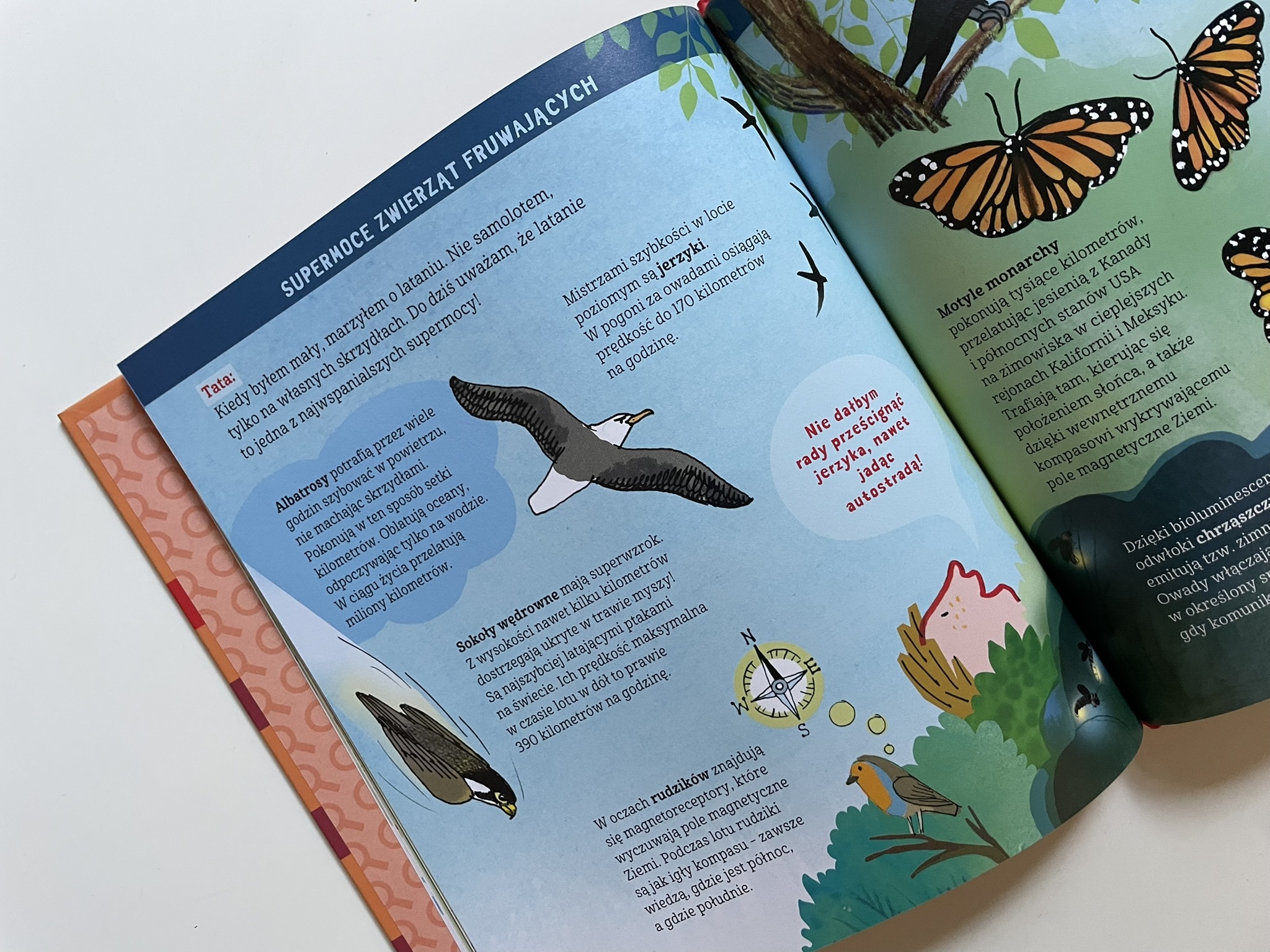 Obserwacja pająka czy mrówek przeradza się w pasjonującą podróż po świecie zwierząt i ich niezwykłych „supermocach”. Dzięki temu książka uczy dzieci uważności i pokazuje, że nauka może zaczynać się tuż za progiem domu.