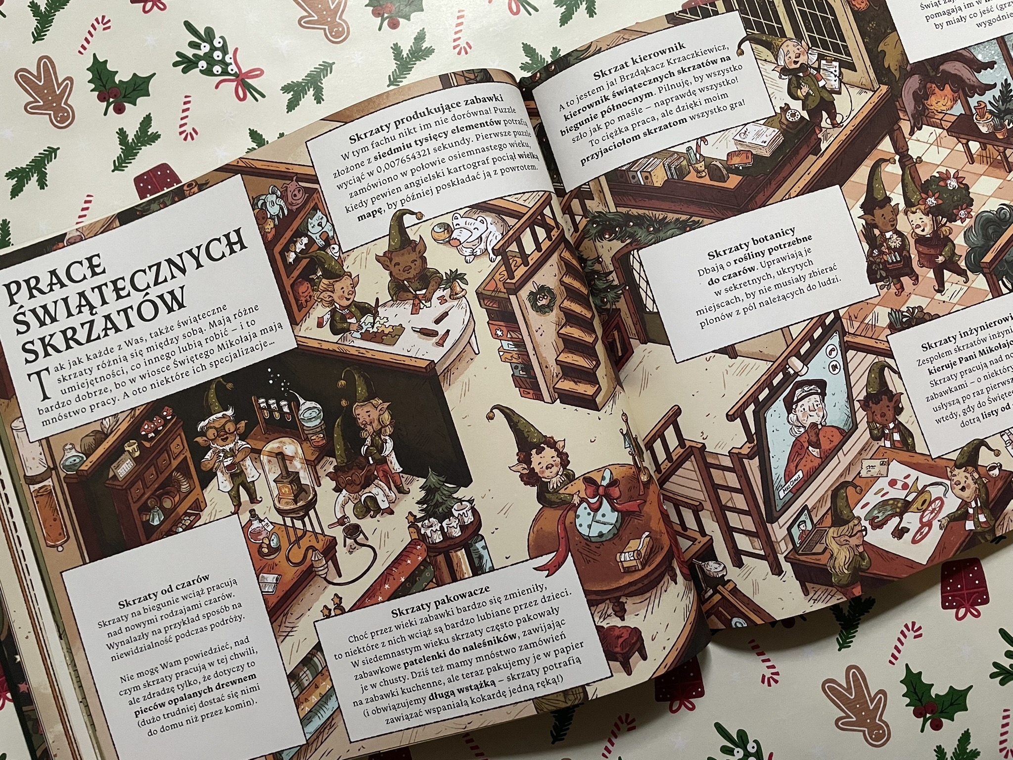 Wszystko podane jest z humorem, lekkością i ogromną sympatią do dziecięcej ciekawości. To sprawia, że książka jest nie tylko uroczym przewodnikiem po mikołajowym świecie, ale też pełną humoru i kreatywności opowieścią, która pobudza wyobraźnię.