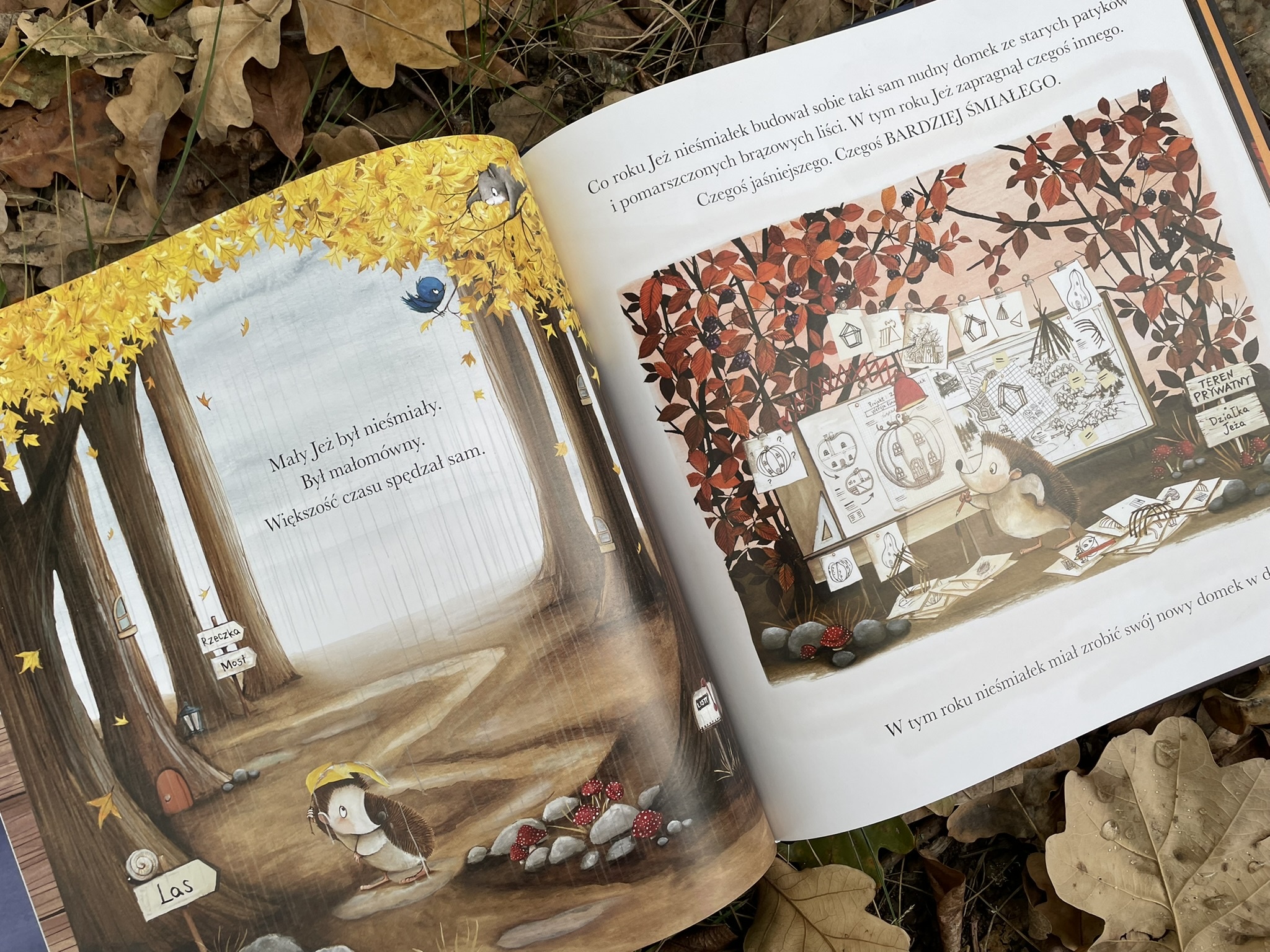 Katy Hudson to jedna z moich ulubionych autorek dla dzieci. W swojej najnowszej książce przedstawia historię nieśmiałego Jeża, który – mimo braku pewności siebie – postanawia zmierzyć się z niezwykle ambitnym wyzwaniem: zbudować dom w… ogromnej dyni!