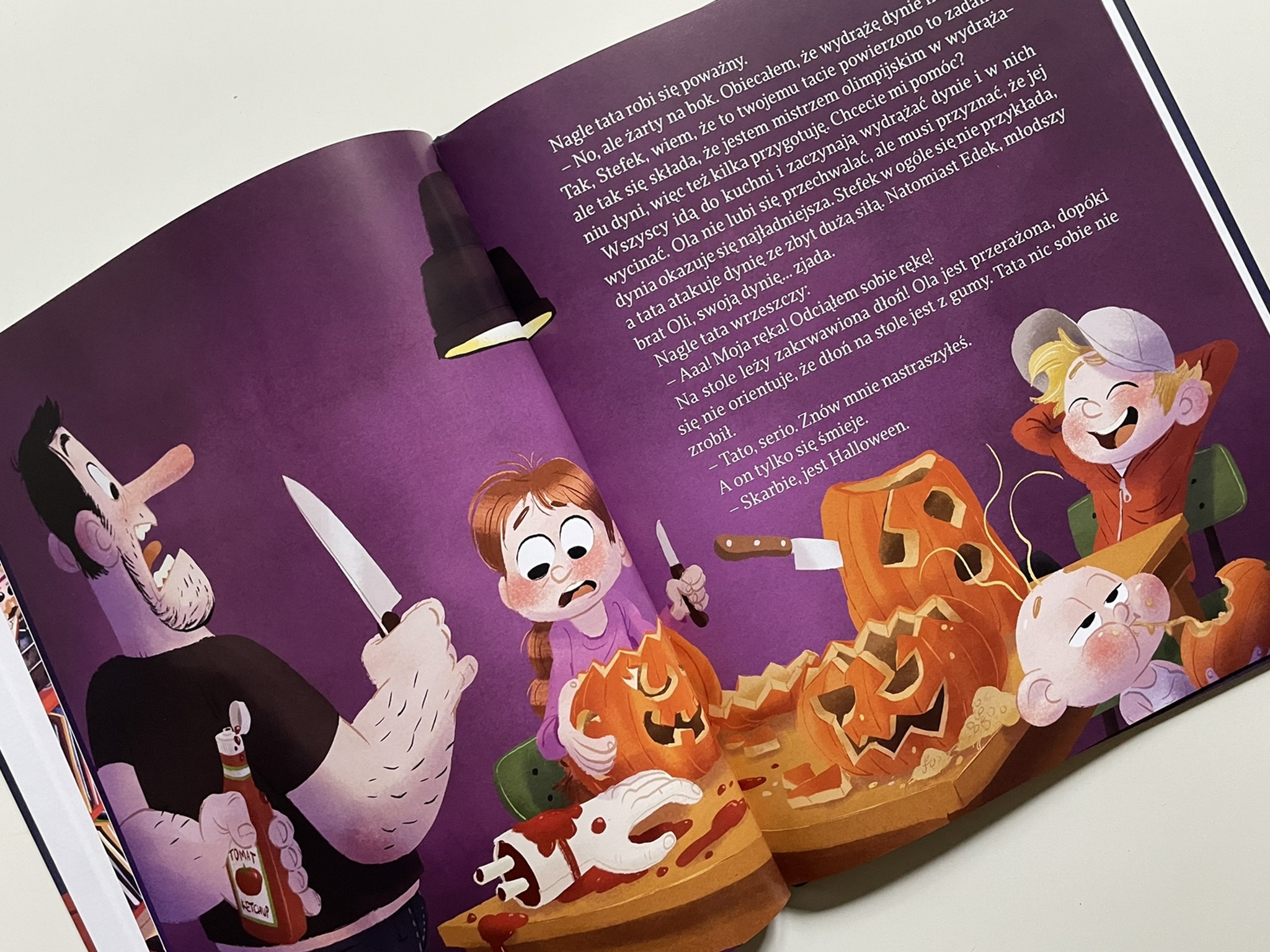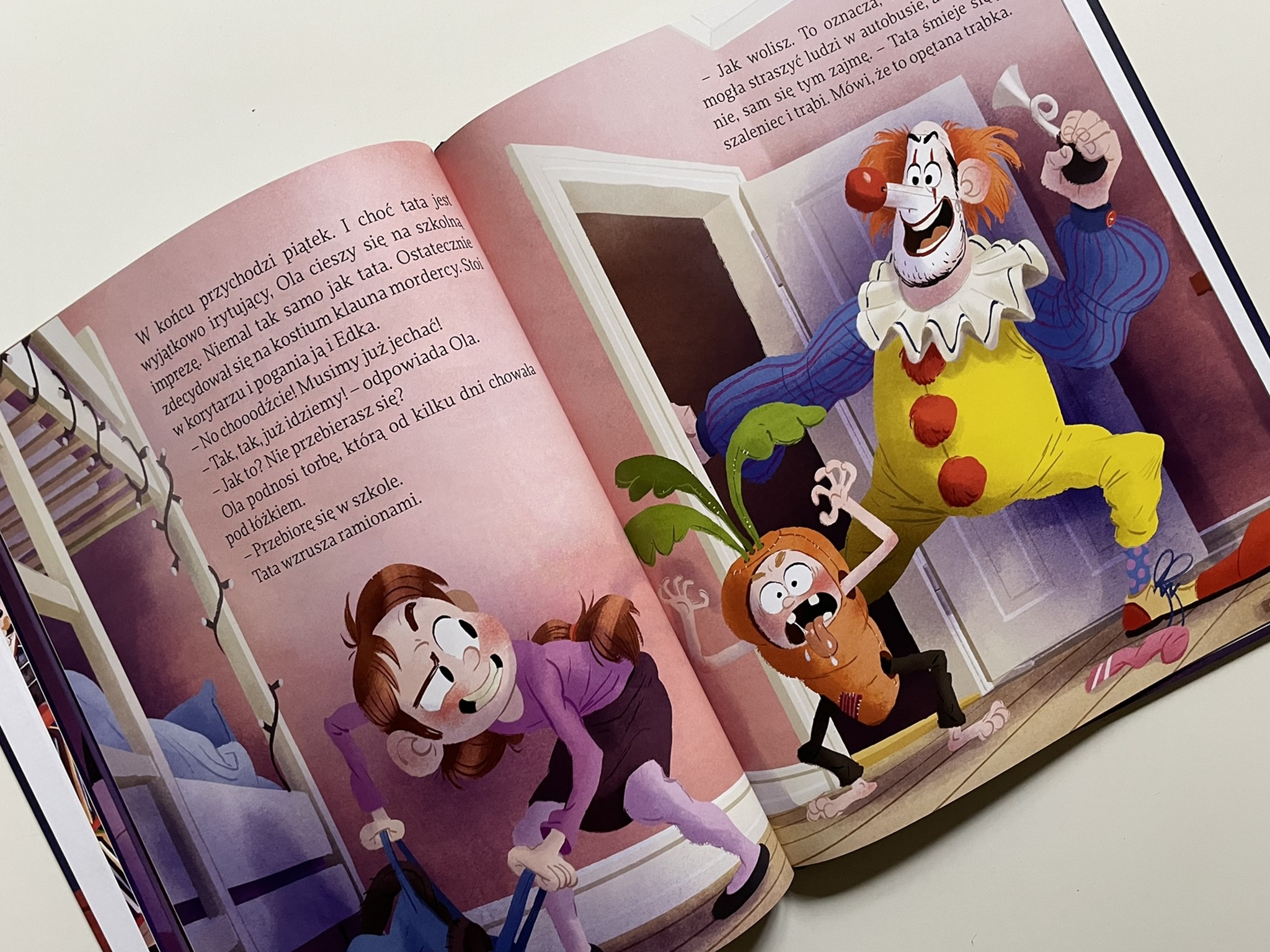 Entuzjazm taty kontrastuje z rosnącą irytacją córki, która musi znosić domowe próby straszenia: plastikowe węże w wannie, odcięte ręce, nagrobek w salonie czy szkielety wyskakujące z ukrycia. Pomysłowość taty wydaje się nie mieć końca – ale cierpliwość Oli już tak. Dziewczynka wpada więc na plan: przygotuje kostium, który wreszcie przestraszy samego mistrza strachów. Ale czy to jest w ogóle możliwe? 🙂